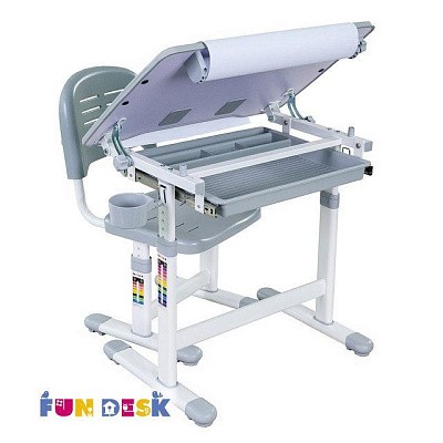 «ФанДеск» могут регулировать высоту парты под рост ребенка, а столешница может изменять угол наклона. Каждую модель можно оборудовать дополнительными аксессуарами. Парта «FunDesk» имеет множество ящиков для хранения канцелярских принадлежностей и тетрадей.