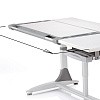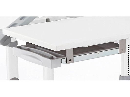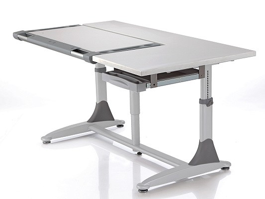 На этой парте размещается все необходимое для работы, так что во время творческого процесса Вам не придется прерываться на поиски нужных рабочих принадлежностей. Эффективность работы за столом зависит от того, насколько удобно расположены на его поверхности все рабочие принадлежности. Угол наклона рабочей поверхности можно плавно отрегулировать от 0° до 30° с помощью механизма "Газлифт", установив столешницу в наиболее удобном положении для выбранного вида работы. Сделать это без особых усилий при переходе от одного вида деятельности к другому может даже школьник. Остальная часть столешницы при этом остается неподвижной – на ней можно расположить все необходимые учебные и канцелярские принадлежности;