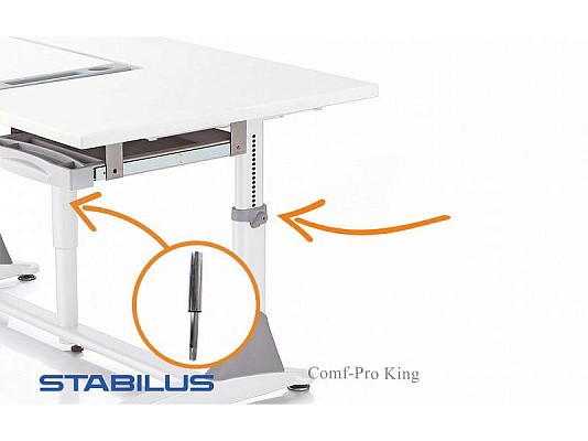 Регулировка высоты стола варьируется в диапазоне 50-75 см. Плавная регулировка высоты обеспечивается благодаря высококачественному немецкому газ-лифту Stabilus.