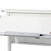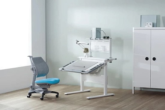 Модель стола М28 отличается простым дизайном без лишних декоративных элементов. Он чист и не нагружен, у него простые линии и формы, а также материалы и цвета используются для достиженияя простоты,чтобы не отвлекать внимания ребенка. Этот стол, благодаря сдержанному дизайну, гармонично впишется в ваш дом. Основная столешница изменяет высоту относительно неподвижного основания парты с помощью специального надежного механизма. Этот механизм позволяет легко и быстро изменять высоту столешницы не только взрослому, но и ребенку. За этой партой можно заниматься даже стоя. А заднюю статичную часть можно использовать для размещения книг, установки держателей экрана компьютера или книжных полок.