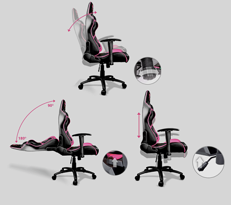 1.Кресло регулируется вверх, вниз, при помощи рычага, который воздействует на газлифт.