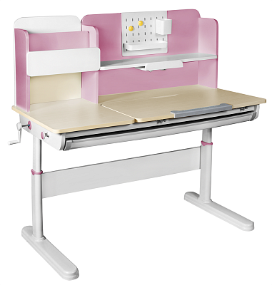 Особенностью парты является регулировка высоты от 550 до 760 мм. Это позволяет адаптировать парту под рост ребенка от 100 до 170 см. Регулировка высоты осуществляется вручную при помощи рукоятки, что делает процесс простым и удобным.