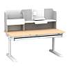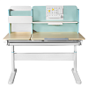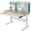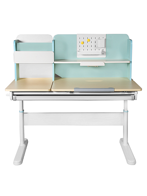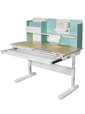 Парта оснащена надстройкой, выдвижным лотком для принадлежностей и выдвижной подставкой под книги. Это позволяет организовать рабочее пространство и держать все необходимые предметы под рукой.