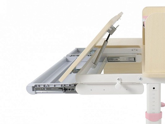 Регулировка высоты столешницы 52-76 см. Высота стола регулируется с помощью механической ручки, что дает возможность легко настроить парту под рост ребенка. Стол с трансформирующейся столешницей, которая изменяет угол наклона до 50 градусов с помощью механизма газлифт. Вы можете установить оптимальный угол наклона столешницы для чтения, письма или рисования. Сбоку, у стола крепится крючок, на который ребенок может повесить портфель или спортивную форму.