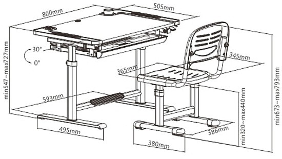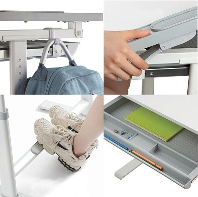 «ФанДеск» могут регулировать высоту парты под рост ребенка, а столешница может изменять угол наклона. Каждую модель можно оборудовать дополнительными аксессуарами. Парта «FunDesk» имеет множество ящиков для хранения канцелярских принадлежностей и тетрадей.