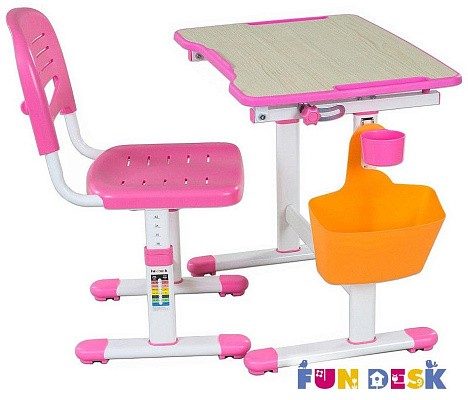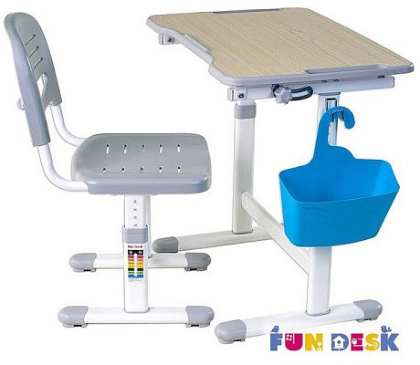 «ФанДеск» могут регулировать высоту парты под рост ребенка, а столешница может изменять угол наклона. Каждую модель можно оборудовать дополнительными аксессуарами. Парта «FunDesk» имеет множество ящиков для хранения канцелярских принадлежностей и тетрадей.