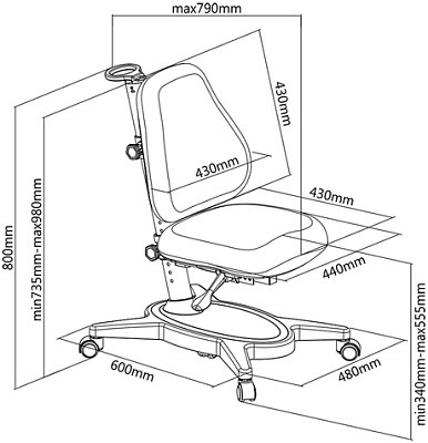 Механизм регулировки позволяет полностью скорректировать размеры кресла по высоте спинки и сиденья в отдельности в соответствии с ростом ребёнка.