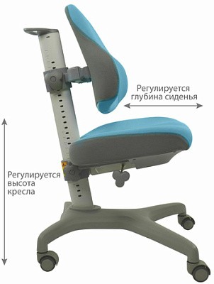 Можно использовать как с растущей партой, так и с обычной. Изменяя глубину спинки и высоту сидения, Вы подберете наиболее комфортное положение для ребенка. Спинка состоит из 2 частей, а колеса имеют функцию стоп-вращения при посадке в кресло человека свыше 25 кг. Малыш не будет отвлекаться от уроков, катаясь на кресле. Двухцветный дизайн обивки прекрасно будет смотреться в Вашем интерьере. Изменяя высоту спинки и глубину сидения, фиксатор следует ослабить, выбирайте оптимальную высоту и только после щелчка закрутите фиксаторы. Только после щелчка фиксатора сиденье и спинка надежно и правильно установлены. Регулировка высоты кресла за счет подъемного газ-лифта.