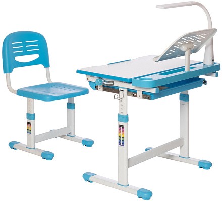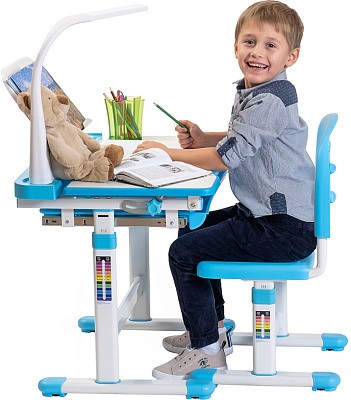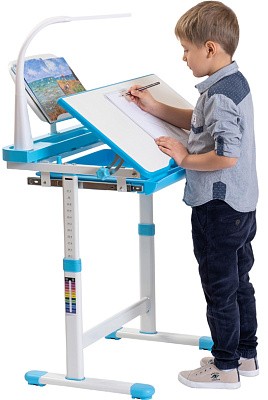 Комплект растущей детской мебели Holto-11: парта с регулируемой подставкой для книг, usb-лампа и стул обеспечит ребенку хорошую правильную осанку на начальную школу и дошкольную подготовку. Наклон столешницы изменяется от 0 до 40 градусов. Парту возможно превратить в мольберт, что позволит ребенку рисовать в положении стоя. Ограничительный бортик не даст бумаги упасть. Стол оснащен крючком для портфеля, пеналом, выдвижным органайзером и подстаканником для порядка на рабочем месте. Комплект подходит для роста от 110 до 170 см. Максимальная нагрузка 60 кг. Ножки оснащены регуляторами высоты для компенсации неровностей пола.