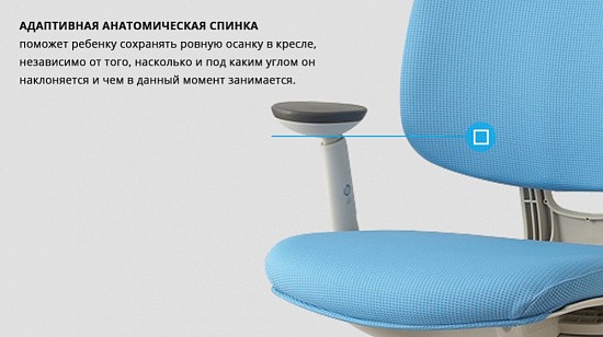 Механизм гибкой спинки снимает нагрузку с позвоночника ребенка, обеспечивая максимальную поддержку и корректируя осанку при сидении.