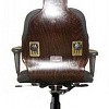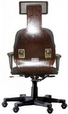 Внешняя спинка кресла выполнена из пластика, отделанного гнуто-клееным шпоном ручной полировки и тонирования. Форма кресла, напоминающая очертания виолончели в сочетании с уникальным рисунком под дерево подчеркивает благородство модели.