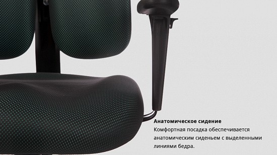 Кресельное сиденье имеет седловидную форму, благодаря чему выполняется глубокая посадка, необходимая для удобного сидячего положения. Обивочный материал устойчив к истиранию, имеет длительный срок эксплуатации и хорошую воздухопроницаемость.