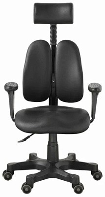 Основанием спинки служит металлический штифт, также он выполняет функции амортизатора, который работает на выпрямление корпуса в вертикальное положение. В зависимости от веса пользователя выравнивается упругость штифта, что позволяет сбалансировать нагрузку на позвоночник.