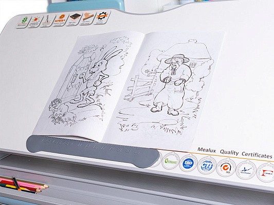 Наличие съемного прорезиненного барьера на столешнице предотвращает скатывание предметов во время выполнения домашнего задания.
