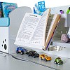 Удобным дополнением для стола является полка - надстройка с двумя полочками поменьше и шкафчиком с металлической дверцей. Теперь книги и тетради всегда будут на своих местах. Задняя стенка надстройки металлическая, ее можно использовать для закрепления заметок магнитами, а также для удобного хранения письменных принадлежностей в двух подвесных емкостях. Прекрасным дополнением к полке является прочная выдвижная подставка для книг с изменяемым углом наклона. При необходимости подставка складывается.