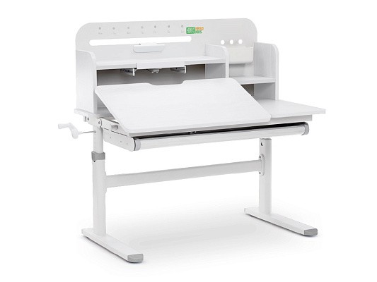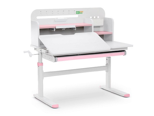 Высота стола регулируется механической ручкой. Это позволяет с легкостью устанавливать парту в соответствии с ростом ребенка.