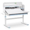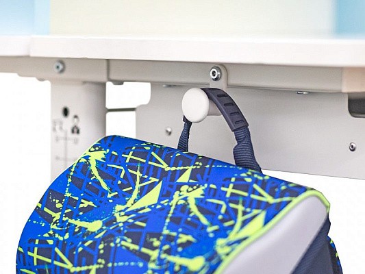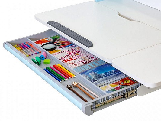 Стол имеет большой выдвижной органайзер, расположенный под столешницей, изготовленный из прочного, безопасного пластика. В таком органайзере школьные принадлежности будут распределены по назначению.