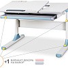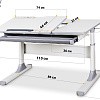 Подвижная часть столешницы меняет свой угол наклона с помощью специального газлифта. Одно плавное нажатие и вы трансформируете рабочую зону для письма и чтения, а благодаря большому углу наклона (до 60 градусов) столешницу можно использовать для рисования, как мольберт. Чтобы ребенок не травмировался, когда самостоятельно будет менять угол наклона, на столешнице есть безопасный зазор.