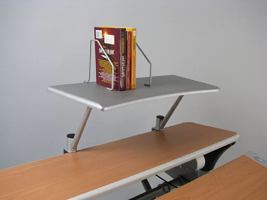 Как этого избежать? Очень просто: достаточно приобрести полку для книг Comf-Pro BD-P7G. Этот удобный съемный аксессуар подойдет абсолютно ко всем столам для детей Меалюкс, конструкция которых предусматривает неподвижную заднюю полку. Два удобных держателя для учебников/книг могут сниматься, если нужно, и в таком случае на полке отлично разместится, к примеру, сканер, колонки или же принтер. Прочные материалы гарантируют длительный срок эксплуатации полки.