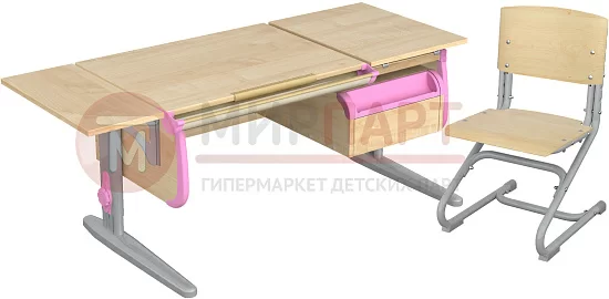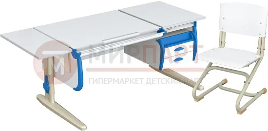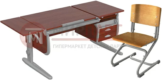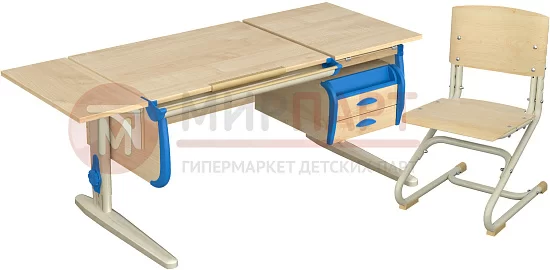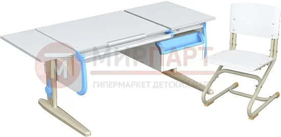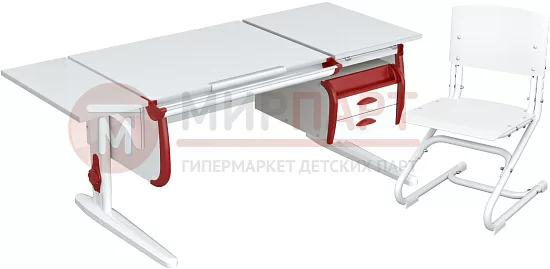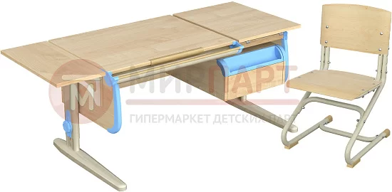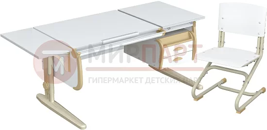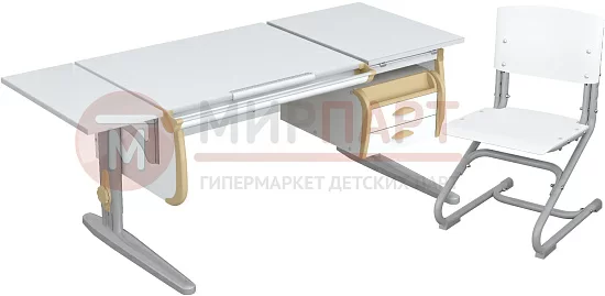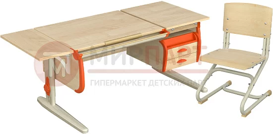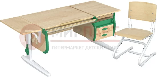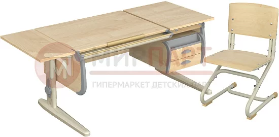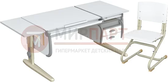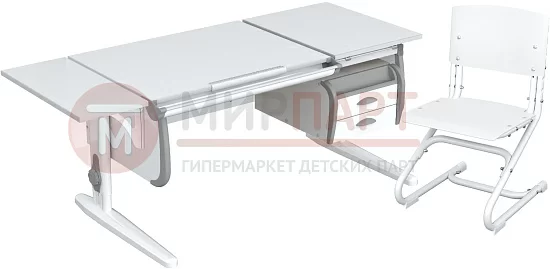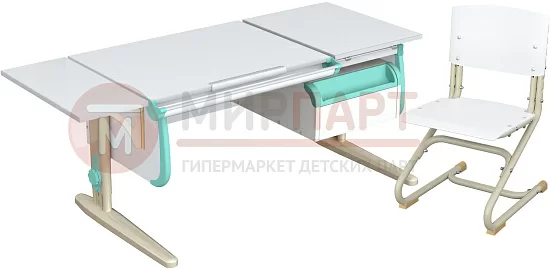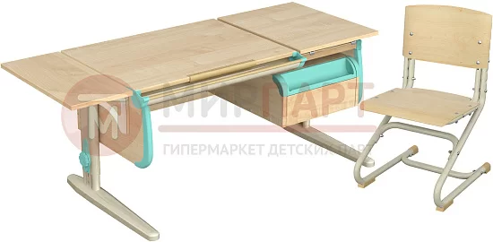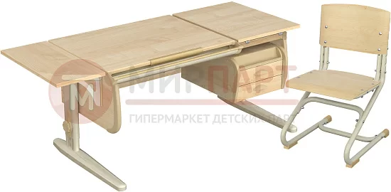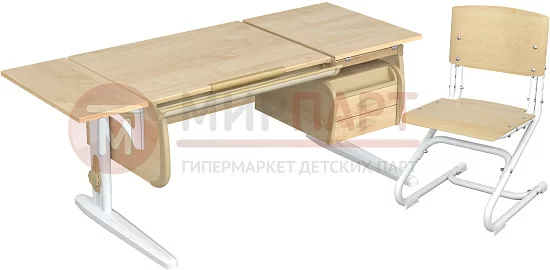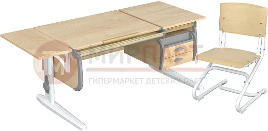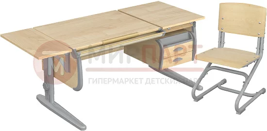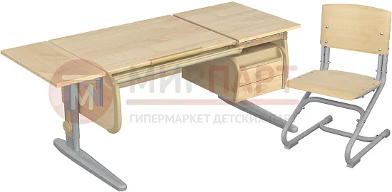 Парта 120 см с раздельной столешницей + тумба + короткая боковая приставка 55 см
