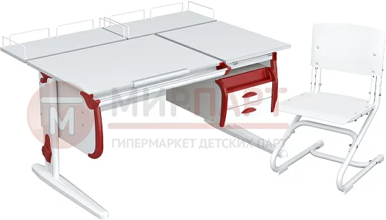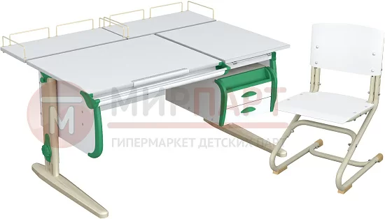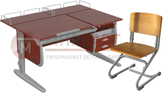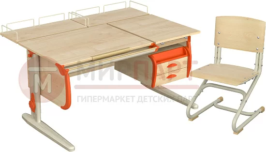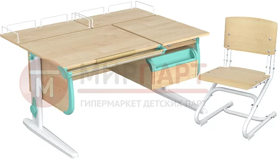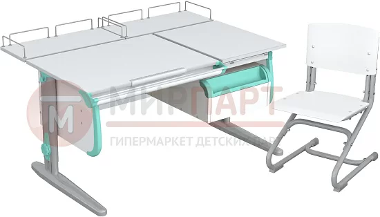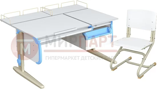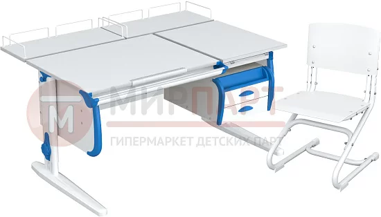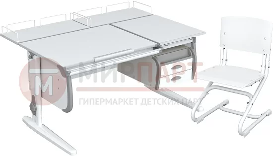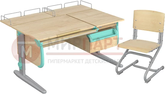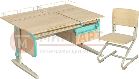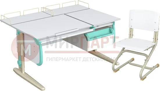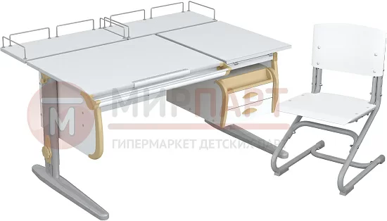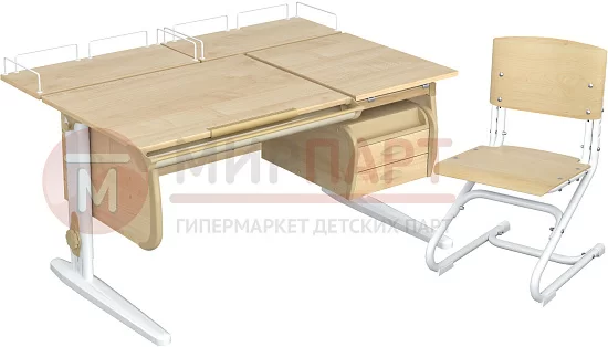 Парта 120 см с раздельной столешницей + тумба + 2 задние приставки