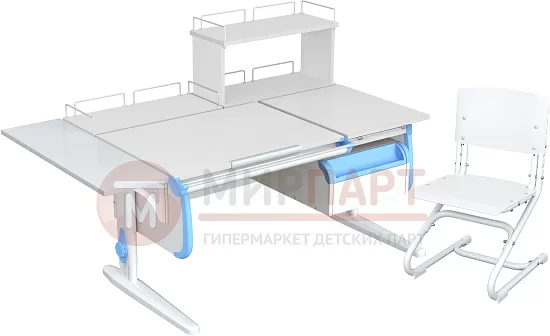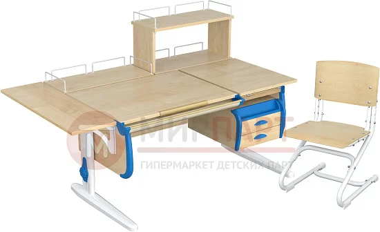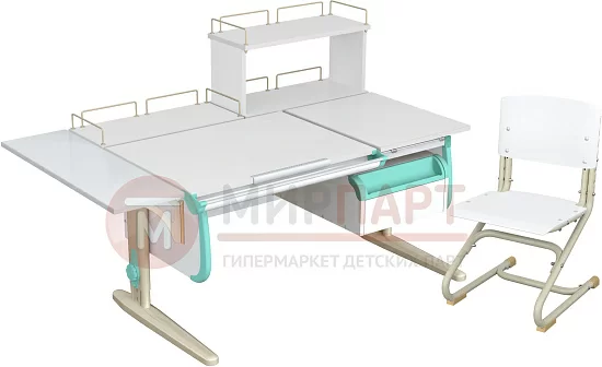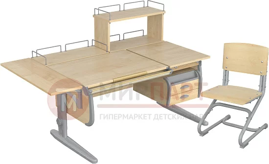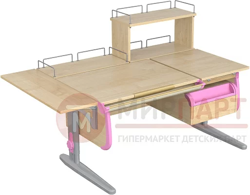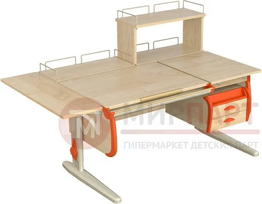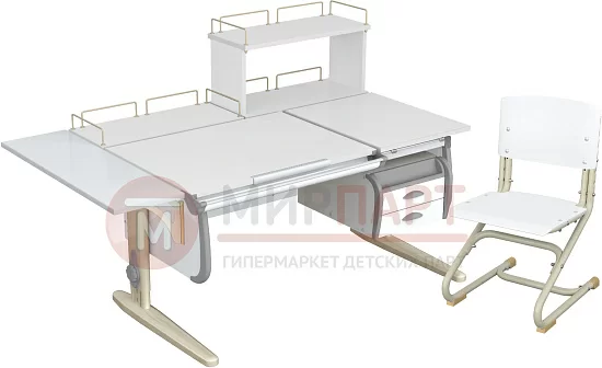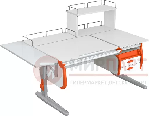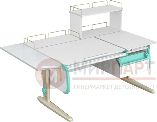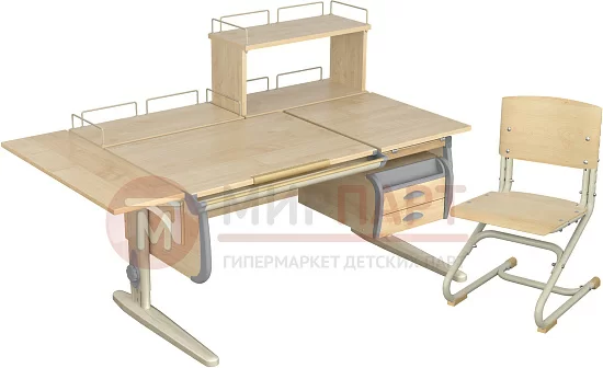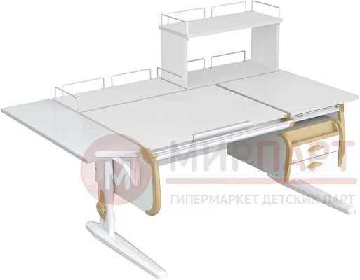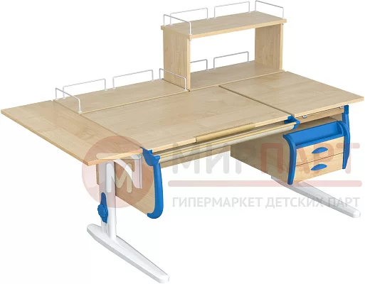 Парта 120 см с раздельной столешницей + тумба + задняя приставка + задняя двухъярусная приставка + боковая приставка 75 см