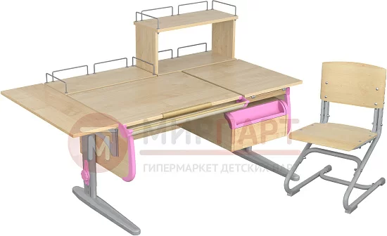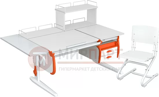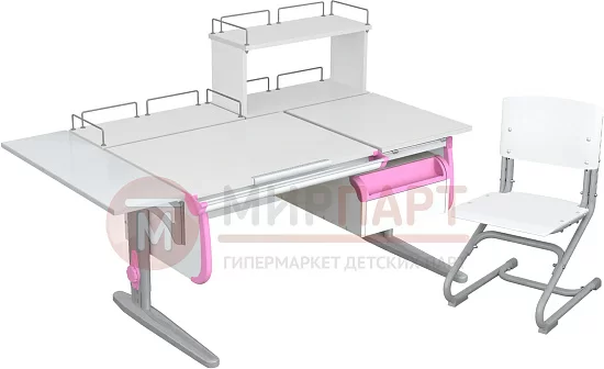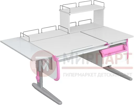 В арсенале СУТ 25-05-Д1 есть раздельная столешница для обеспечения комфорта во время занятий, подвесная тумбочка с двумя ящиками и пеналом, короткая боковая полка для тетрадей и учебников и две просторных задних приставки, одна из которых двухъярусная. Всё это богатство в совокупности превращает растущую парту в настоящий детский кабинет, возможностями которого не могут похвастаться и многие взрослые модели рабочих мест. В сочетании с ярким стильным дизайном белого цвета такие достоинства не могут оставить равнодушными ни своих будущих маленьких владельцев, ни их родителей.