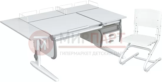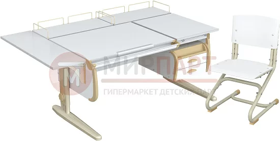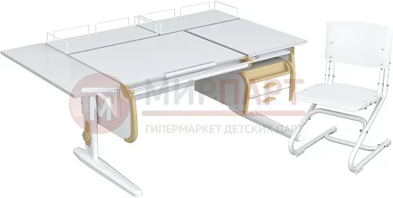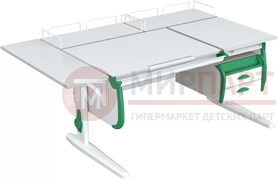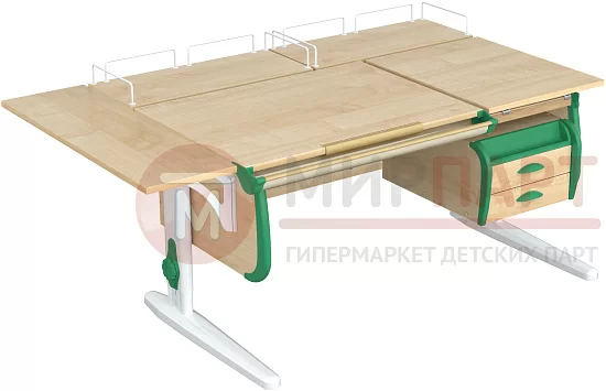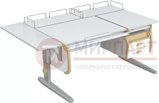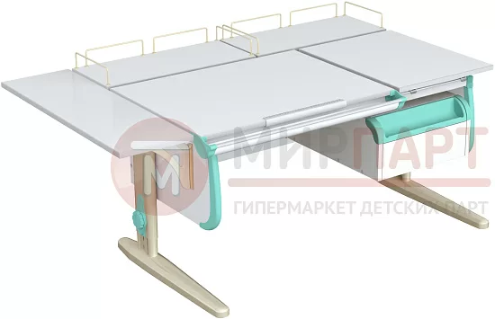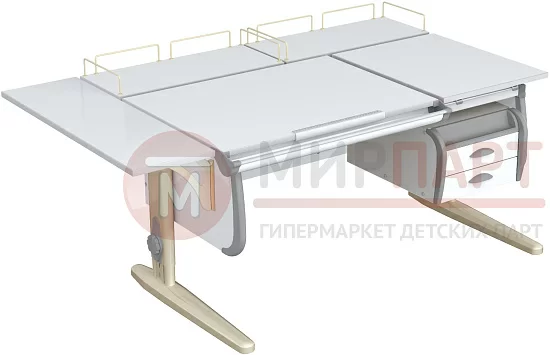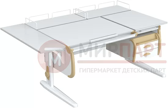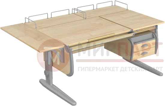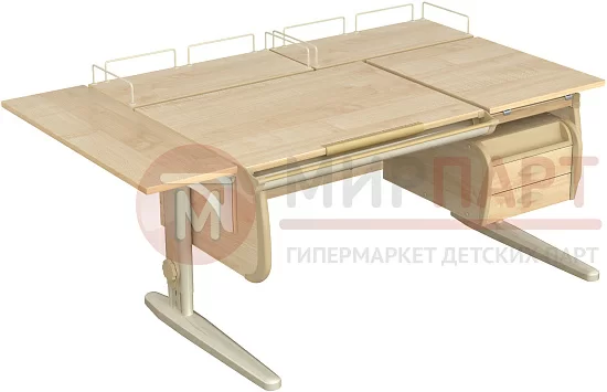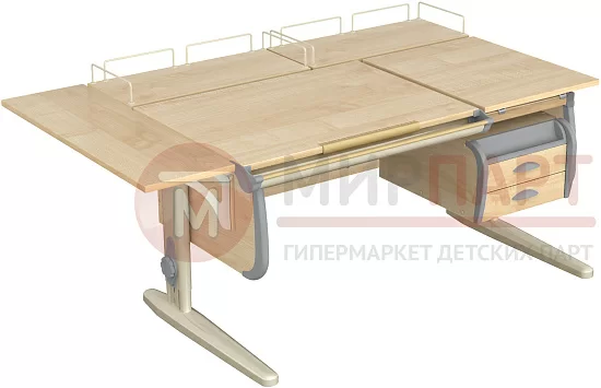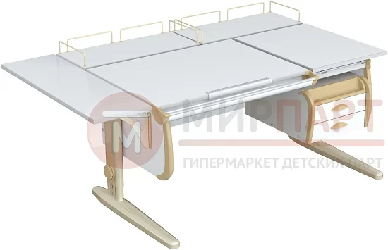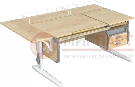 Парта 120 см с раздельной столешницей + тумба + 2 задние приставки + боковая приставка 75 см