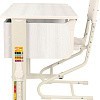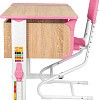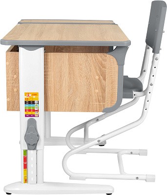 Уникальной особенностью модели «СУТ-41-01-К» является современный дизайн. Трендовые, мягкие цвет делает комнату светлее, способствует созданию рабочего настроения и не утомляет глаза ребёнка. Для снижения уровня детской травматичности предусмотрены пластиковые накладки, полиуретановый бампер, надежный многоуровневый механизм фиксации высоты.