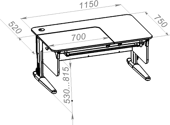 • Высота парты регулируется под рост детей от 115 до 205 см.
