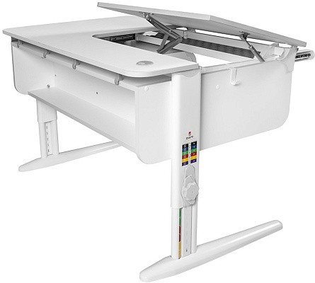 • Модель с двумя эргономичными столешницами: одна регулируется по углу наклона, вторая стационарная.