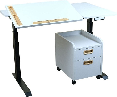 Электронный стол Trifecta со встроенной столешницей с изменяемым углом наклона— это самый эргономичный вариант среди всех столов с электроприводом! Рабочая поверхность столешницы снабжена органайзером для хранения канцтоваров, предотвращая их падение при изменении угла наклона. А также магнитной линейкой для удержания тетрадей во время письма.