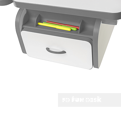 «ФанДеск» могут регулировать высоту парты под рост ребенка, а столешница может изменять угол наклона. Каждую модель можно оборудовать дополнительными аксессуарами. Парта «FunDesk» имеет множество ящиков для хранения канцелярских принадлежностей и тетрадей.