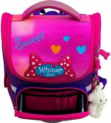 «Раскладушка» - это классическая модель ранцев, которая так полюбилась школьникам. Данная модель может полностью раскладываться и принимать плоскую форму. В центральном отделении имеется два разделителя и резинка для крепления школьных принадлежностей. На передней части ранца расположен карман на молнии украшенный объемной 3D картинкой. Два кармана по бокам.