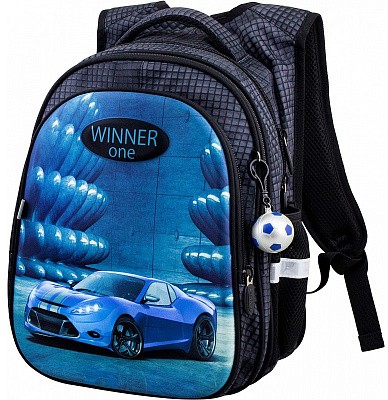 В школьном рюкзаке два основных отделения и карман-органайзер. Основное отделение с 2 двумя разделителями и резинкой для крепления школьных принадлежностей. Второе отделение без наполнения. Спереди вместительный карман на молнии украшенный объёмной 3D картинкой с органайзером для письменных принадлежностей. По бокам карманы-сеточки на резинке.